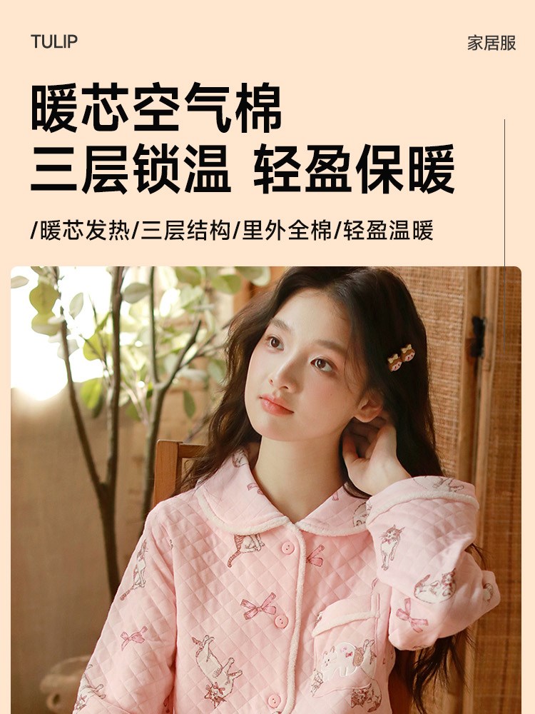 ¥99新女士空气层夹棉家居服(猫咪)