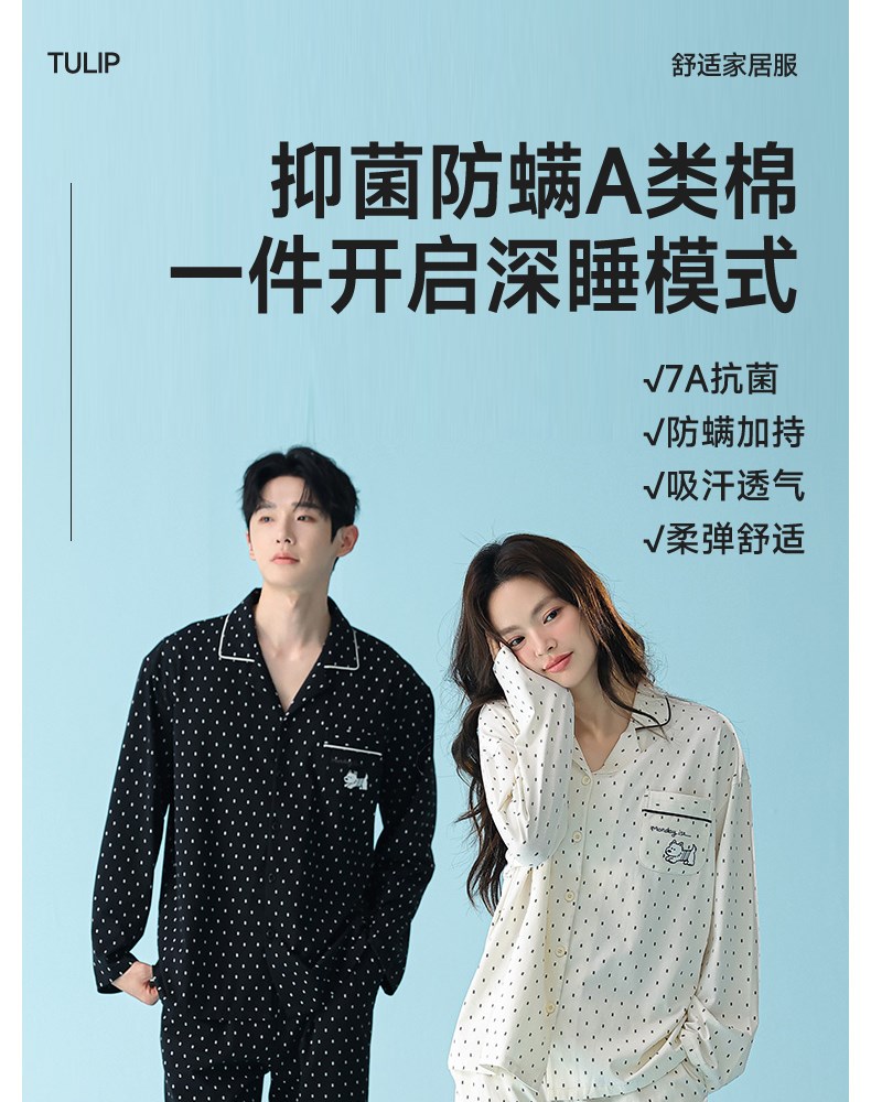 ¥109新全棉抗菌防螨睡衣(点点)