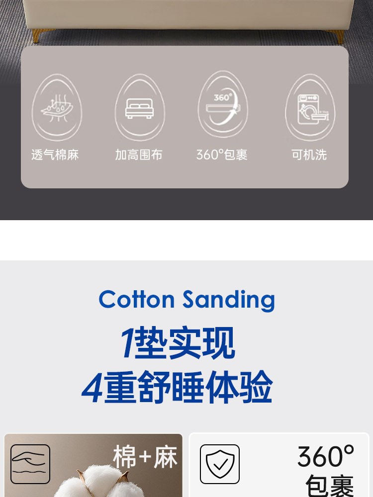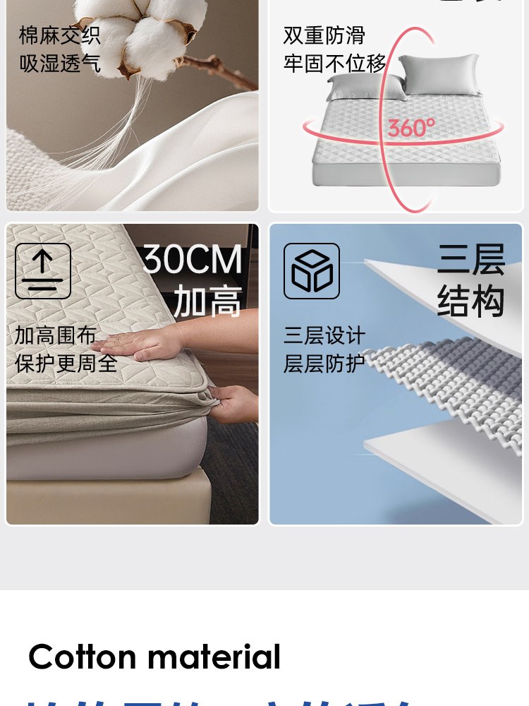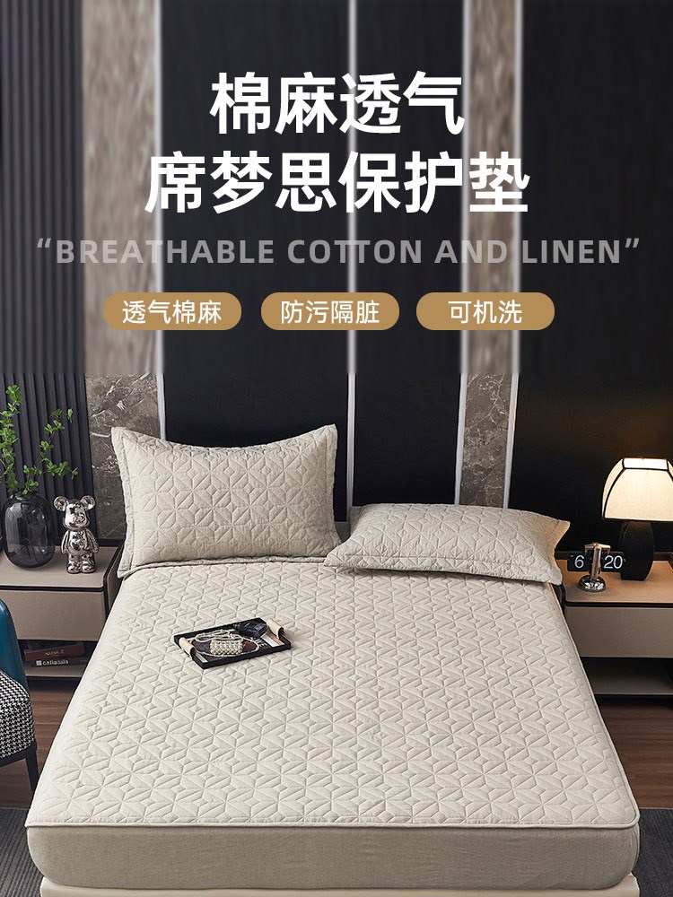 ¥349新棉麻透气席梦思保护垫