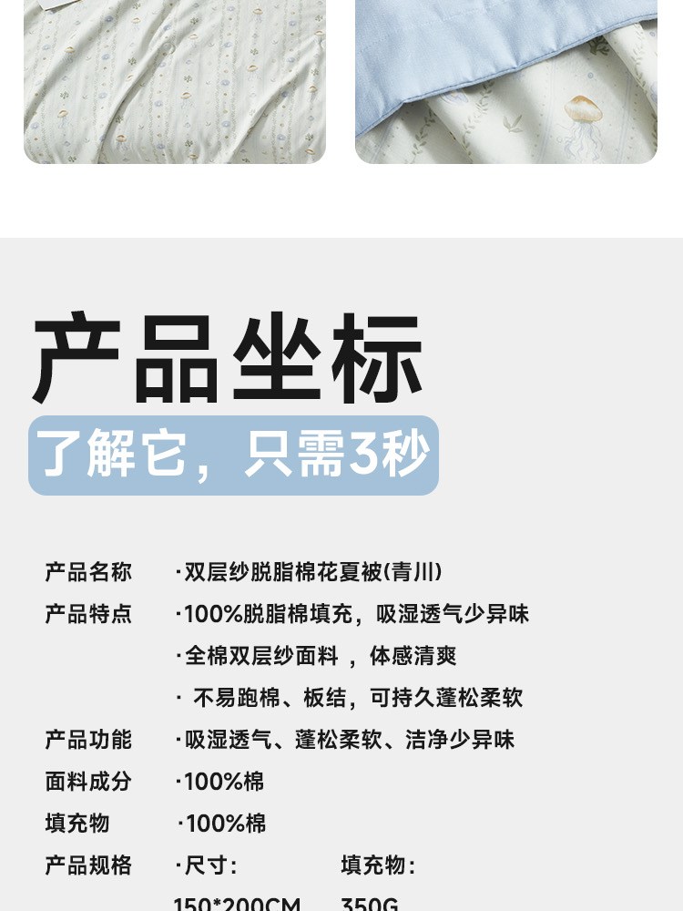 双层纱脱脂棉花夏被(青川)