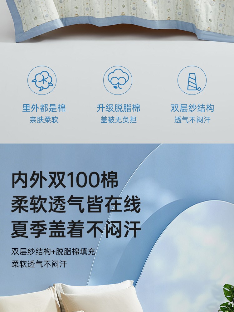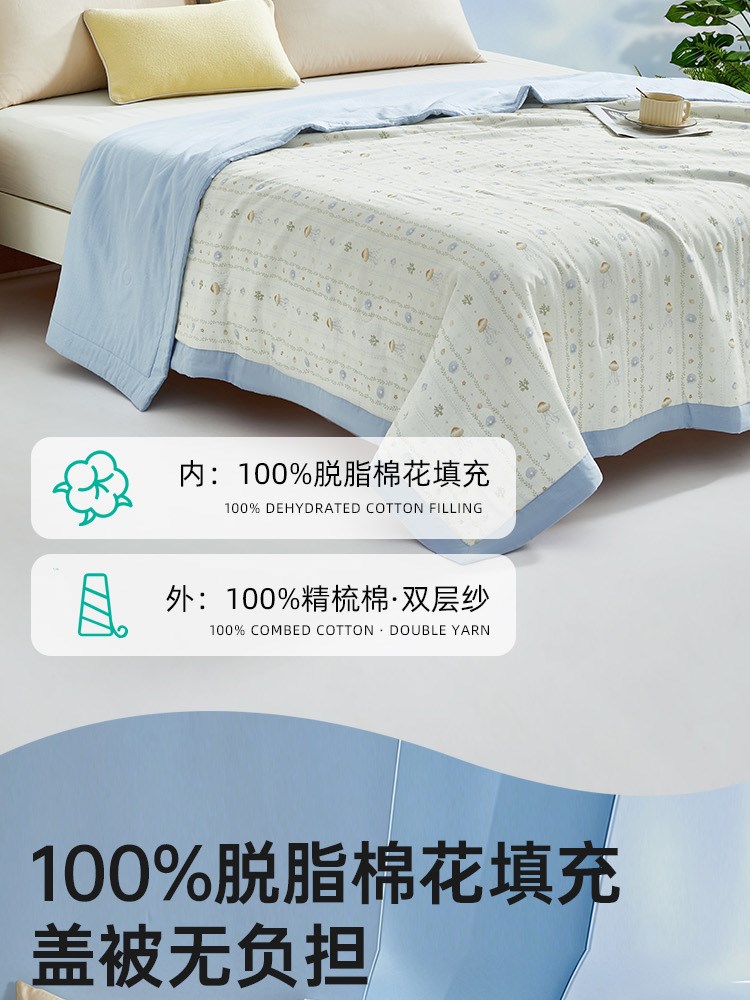¥309新双层纱脱脂棉花夏被(青川)