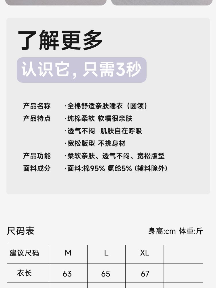 ¥99新全棉舒适亲肤睡衣(圆领)