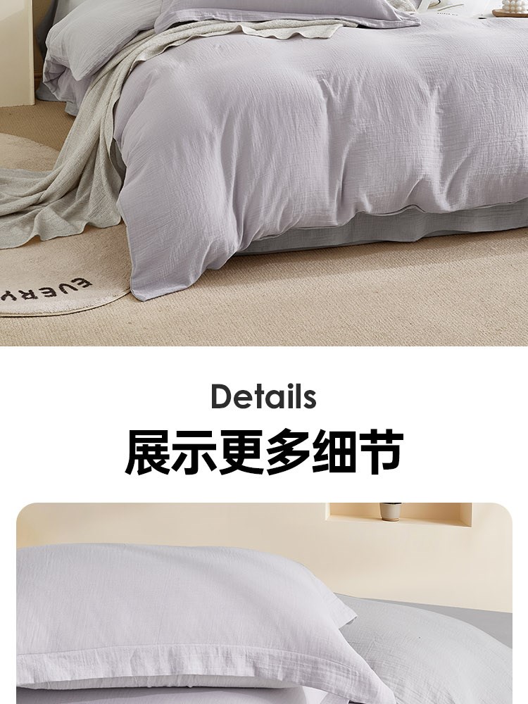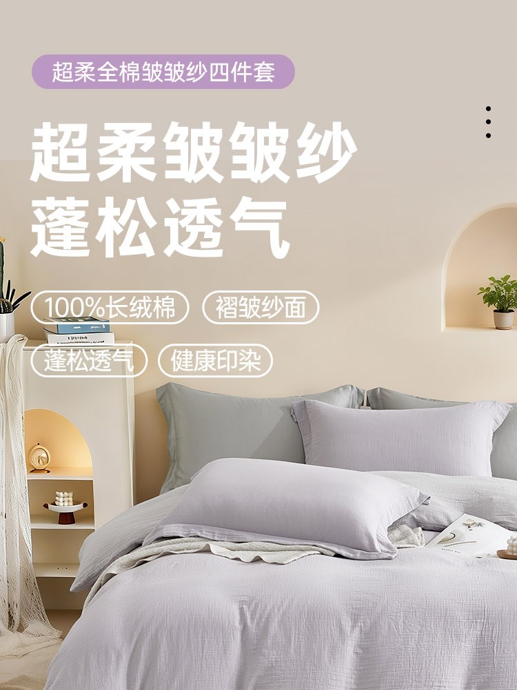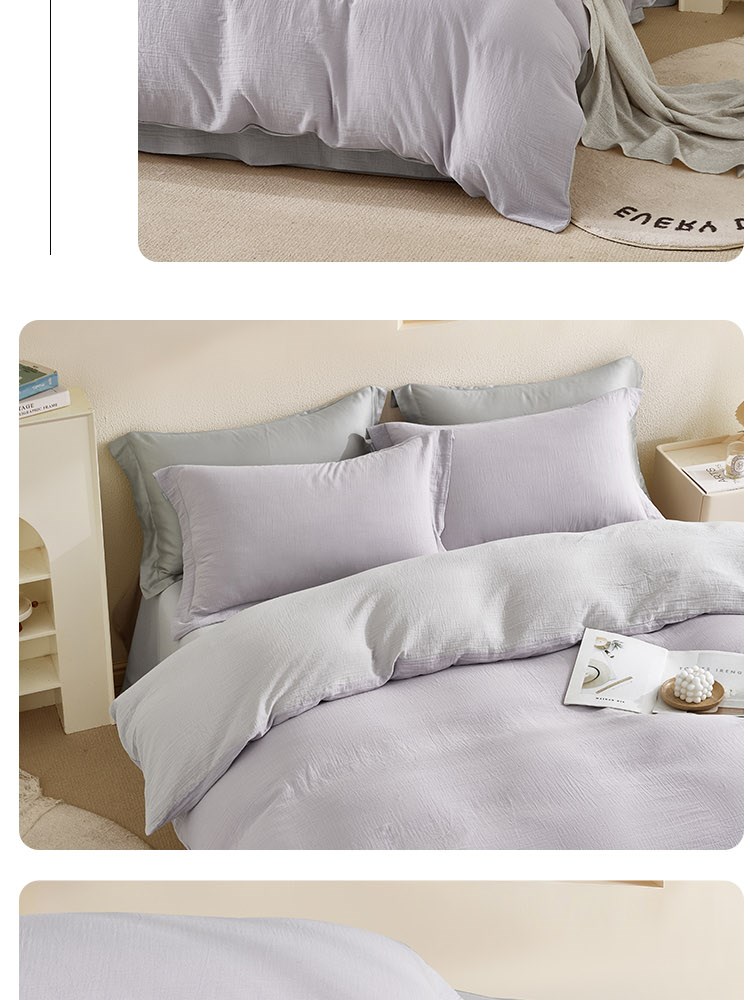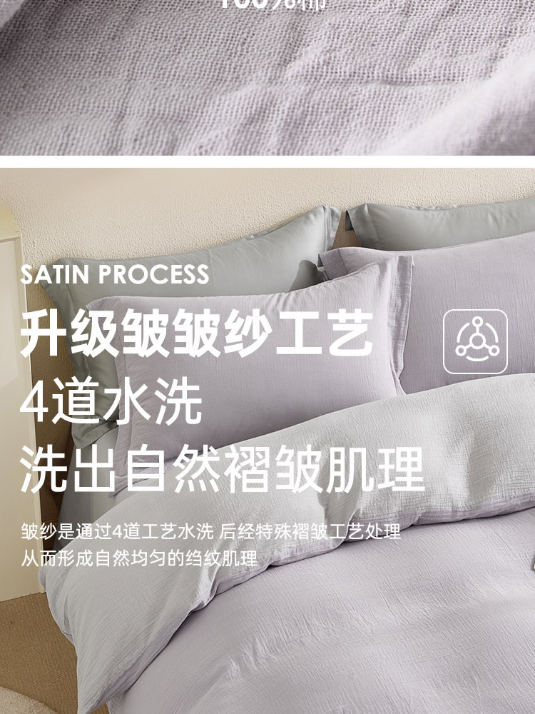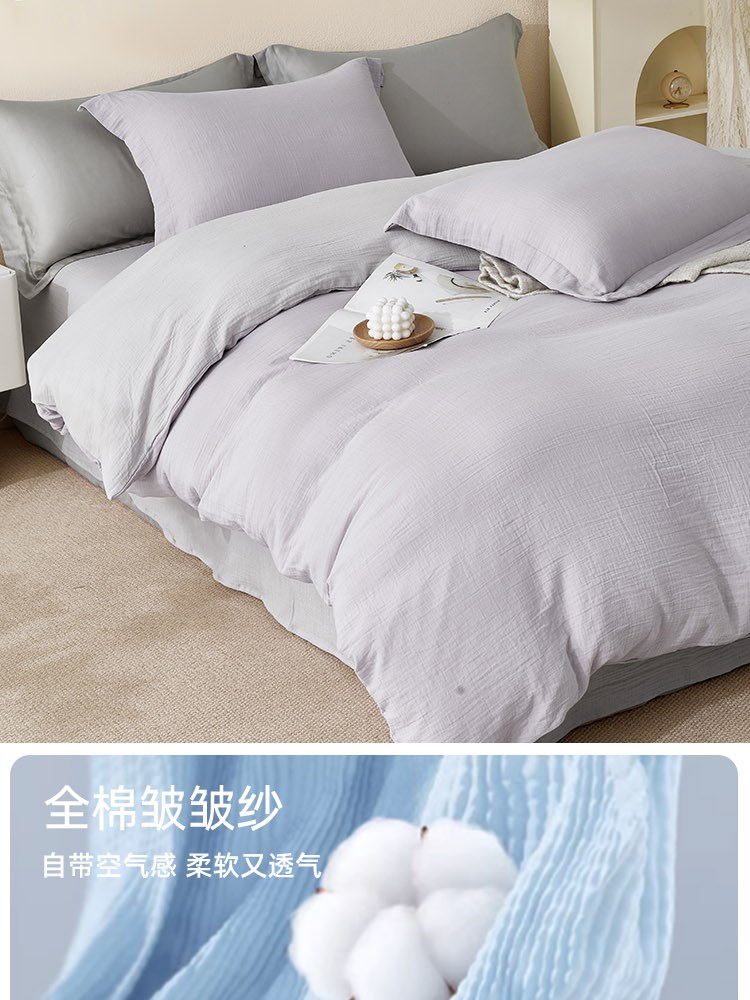 ¥649新超柔全棉皱皱纱四件套(烟紫/月光灰)