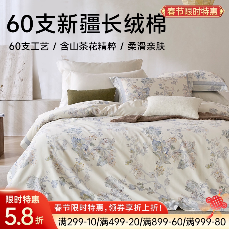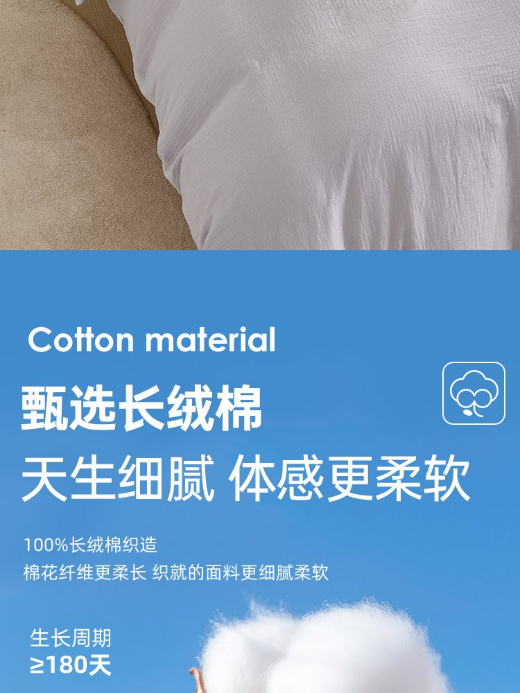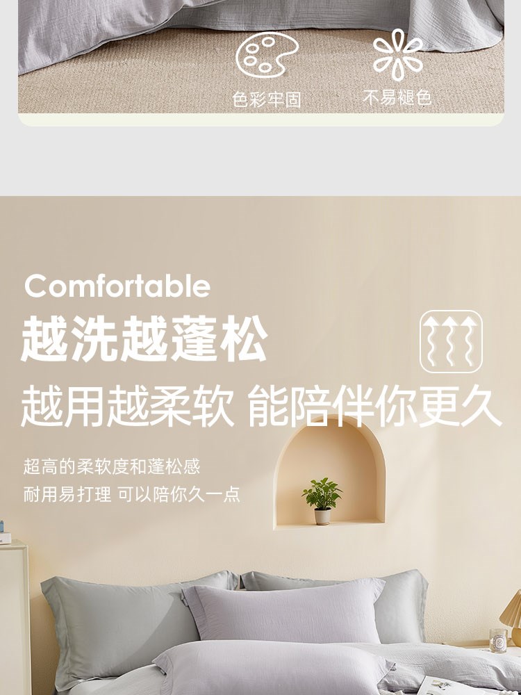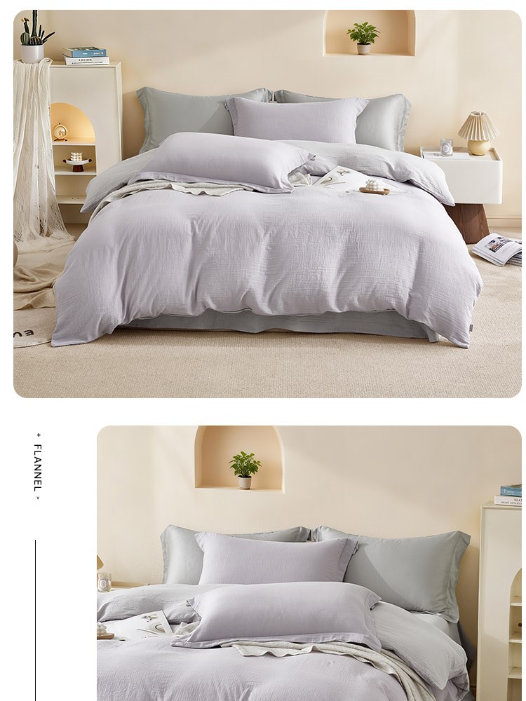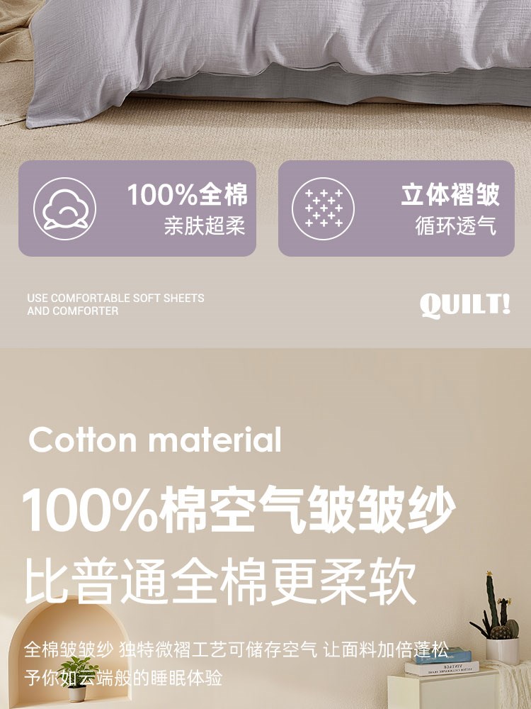 ¥649新超柔全棉皱皱纱四件套(烟紫/月光灰)