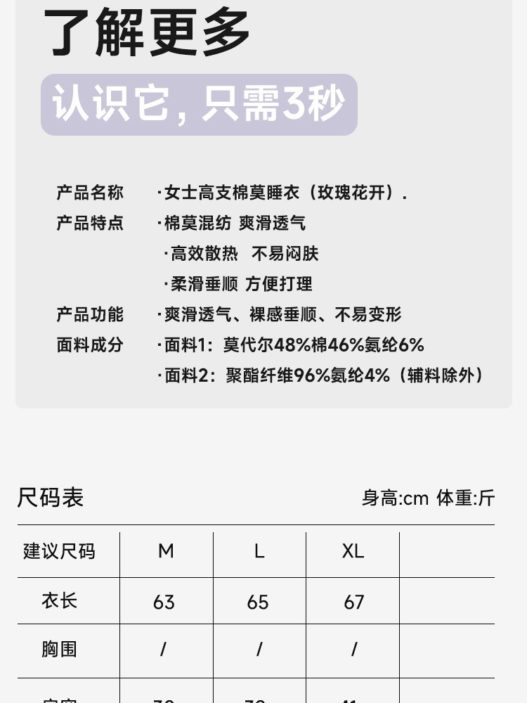 ¥139新高支棉莫睡衣(玫瑰花开)