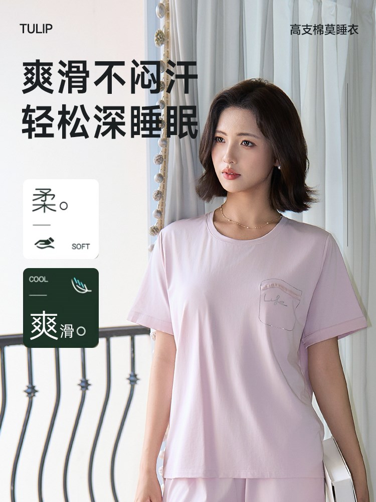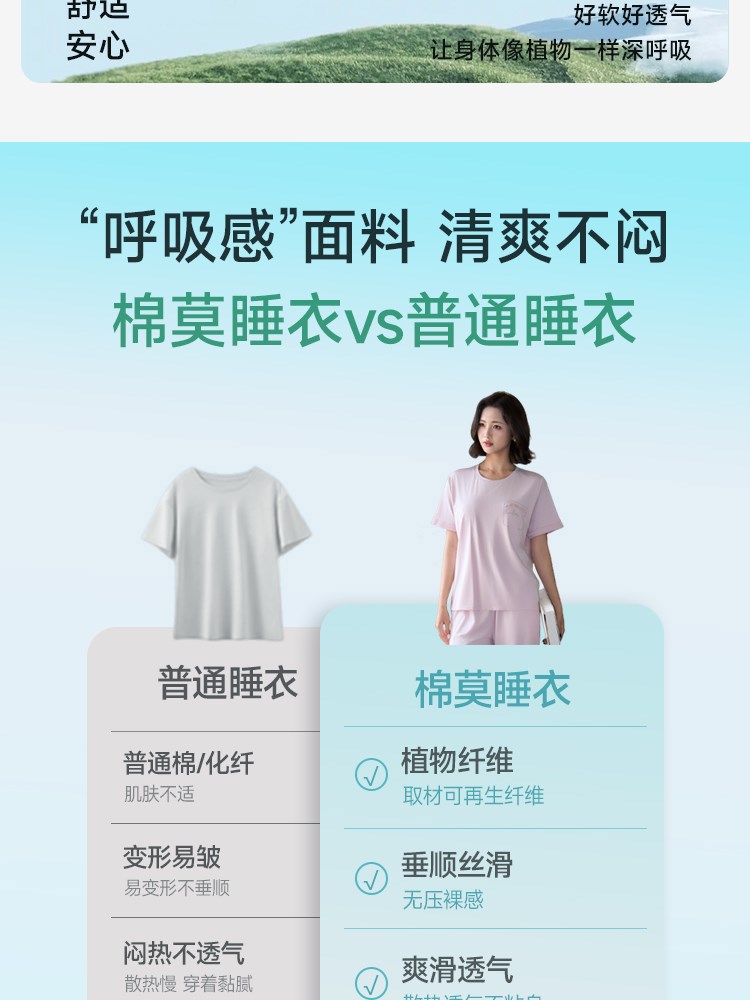 ¥109新高支棉莫睡衣(舒韵圆领带胸垫)