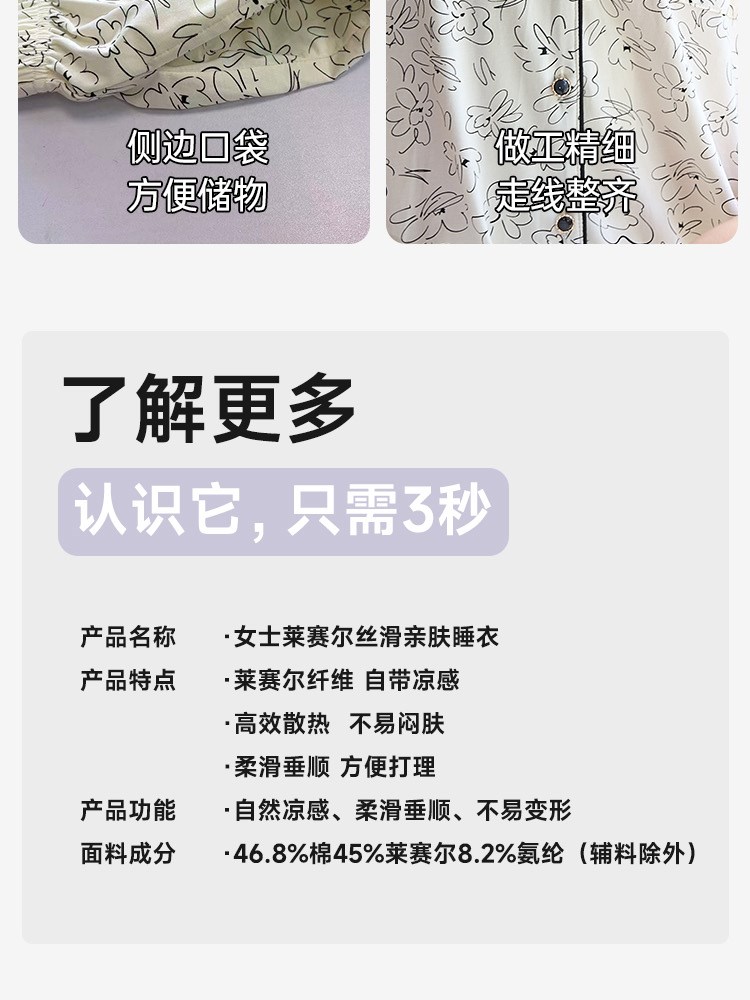 ¥119每满299减30莱赛尔丝滑亲肤睡衣(雅韵)