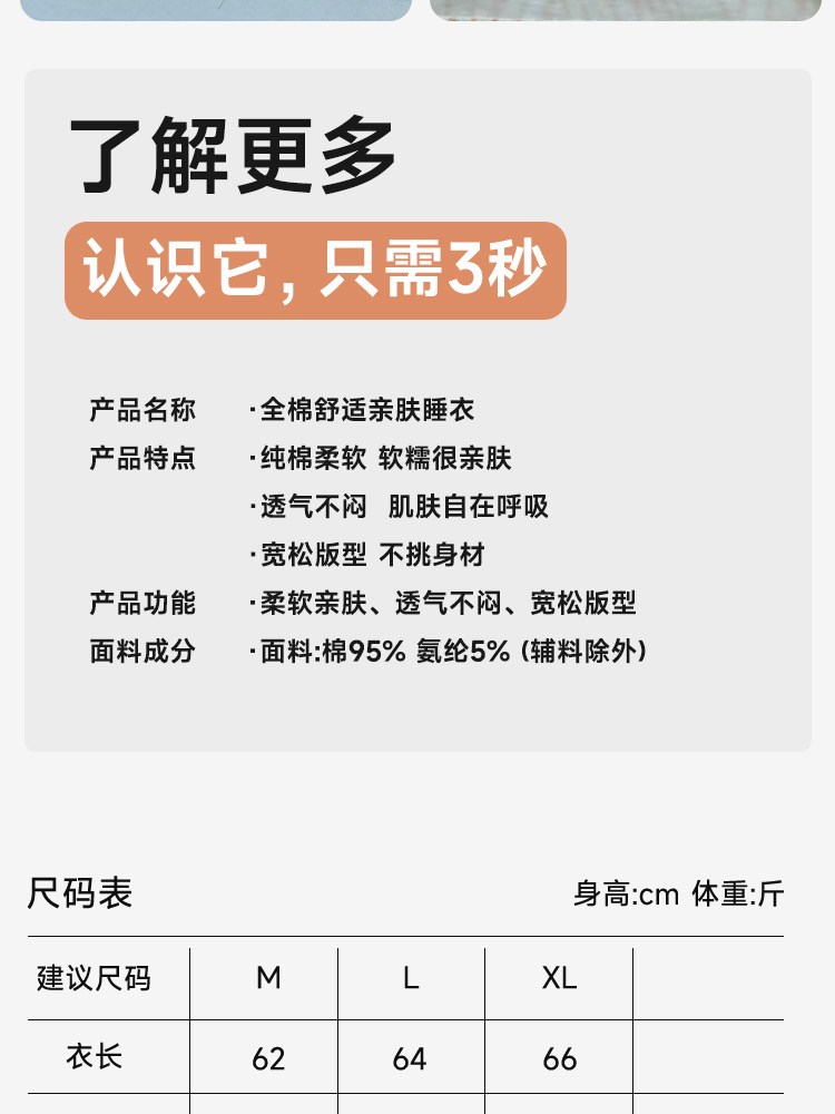¥99每满299减30全棉舒适亲肤睡衣(波浪带胸垫)