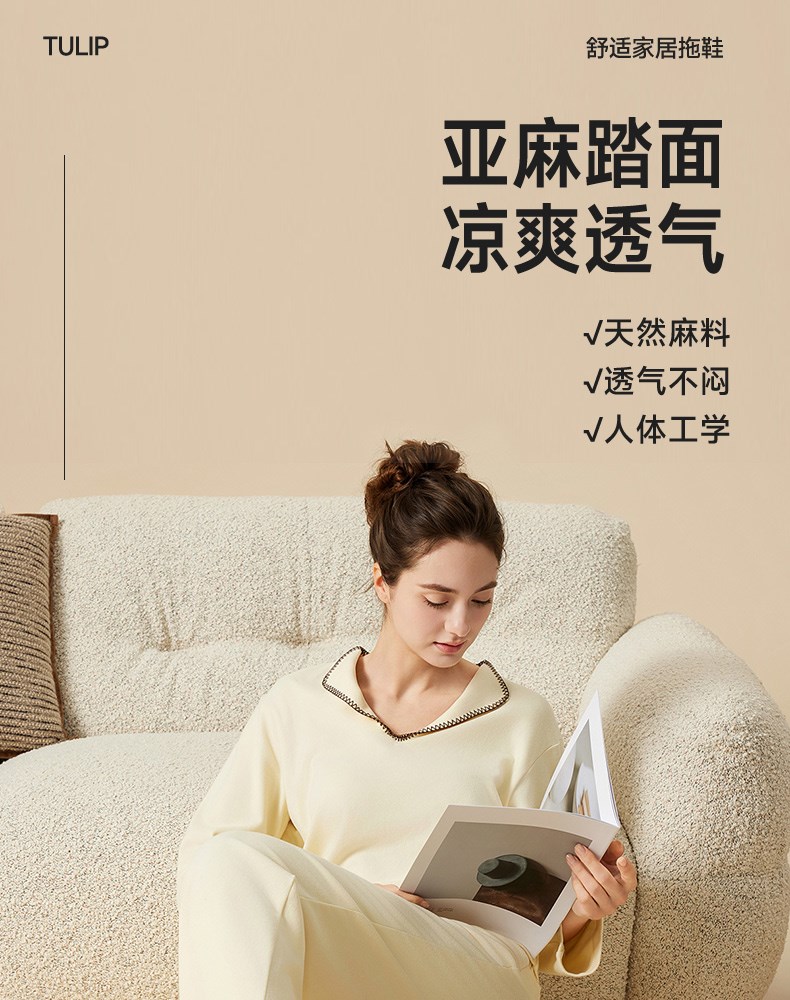透气亚麻家居拖鞋