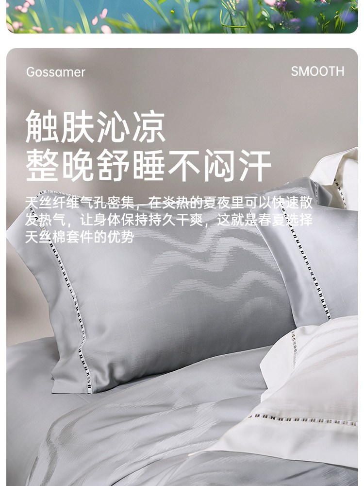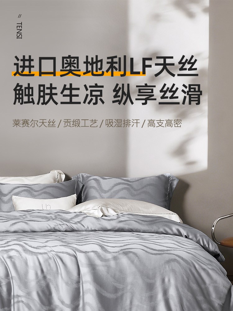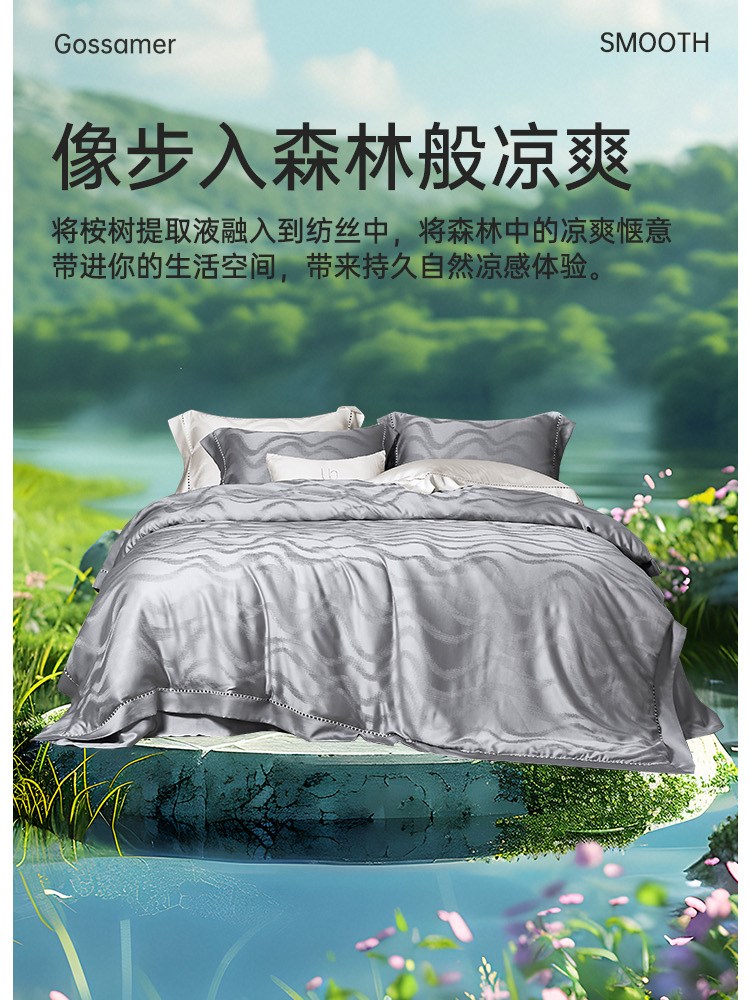¥1198每满299减30臻品天丝轻奢提花四件套(山叶水影)