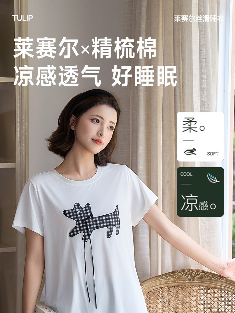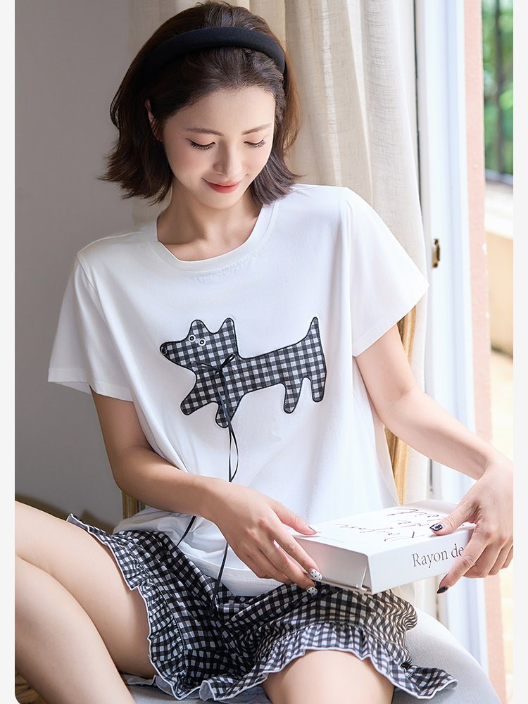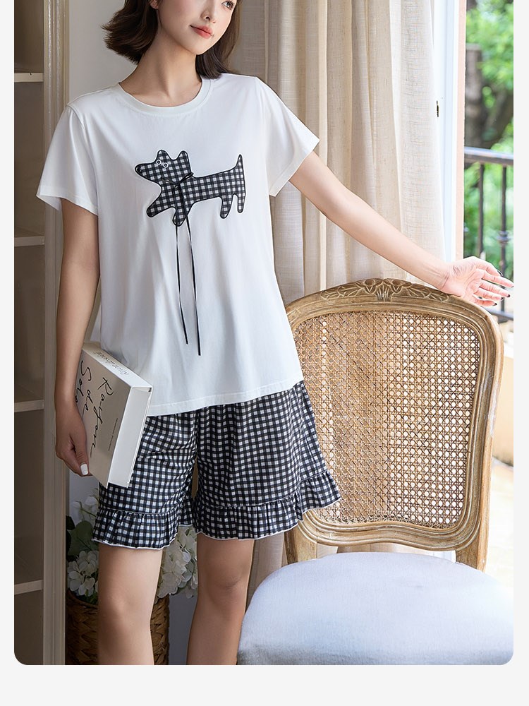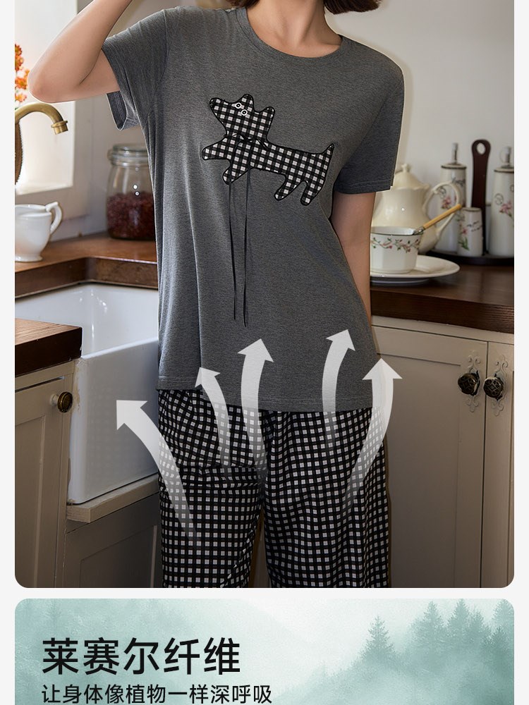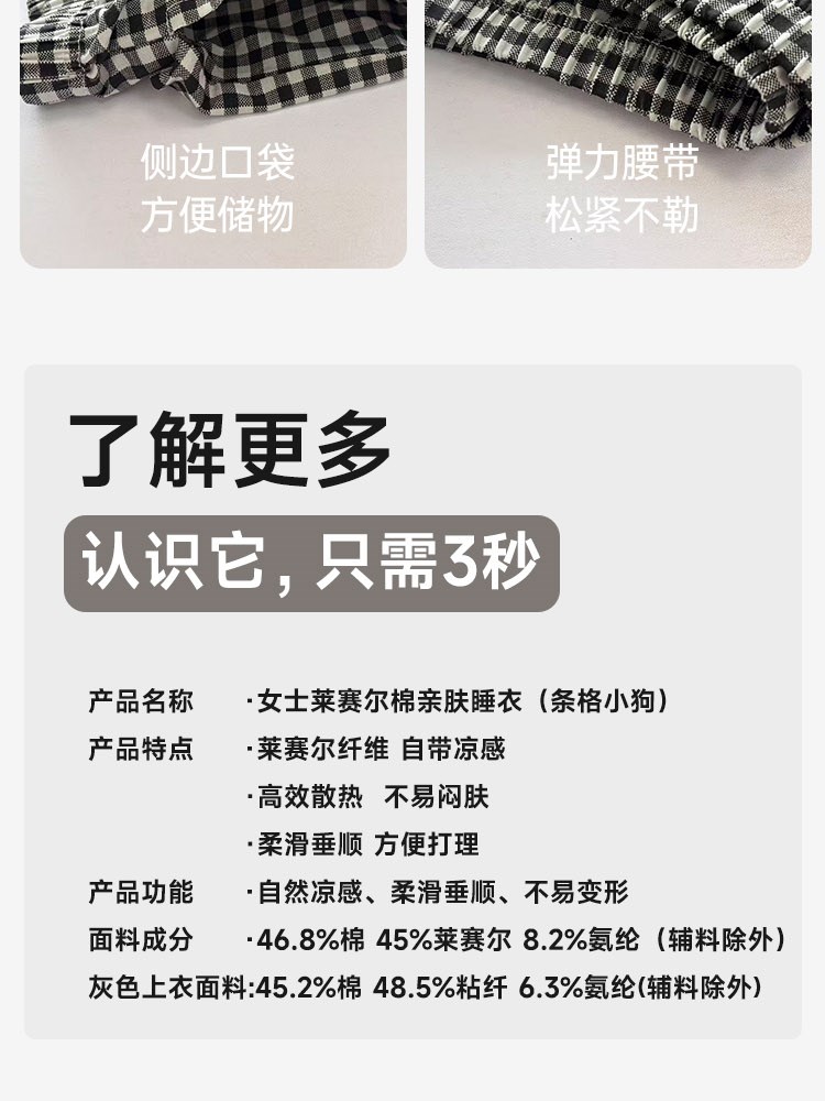 ¥99新莱赛尔棉亲肤睡衣(条格小狗)短短
