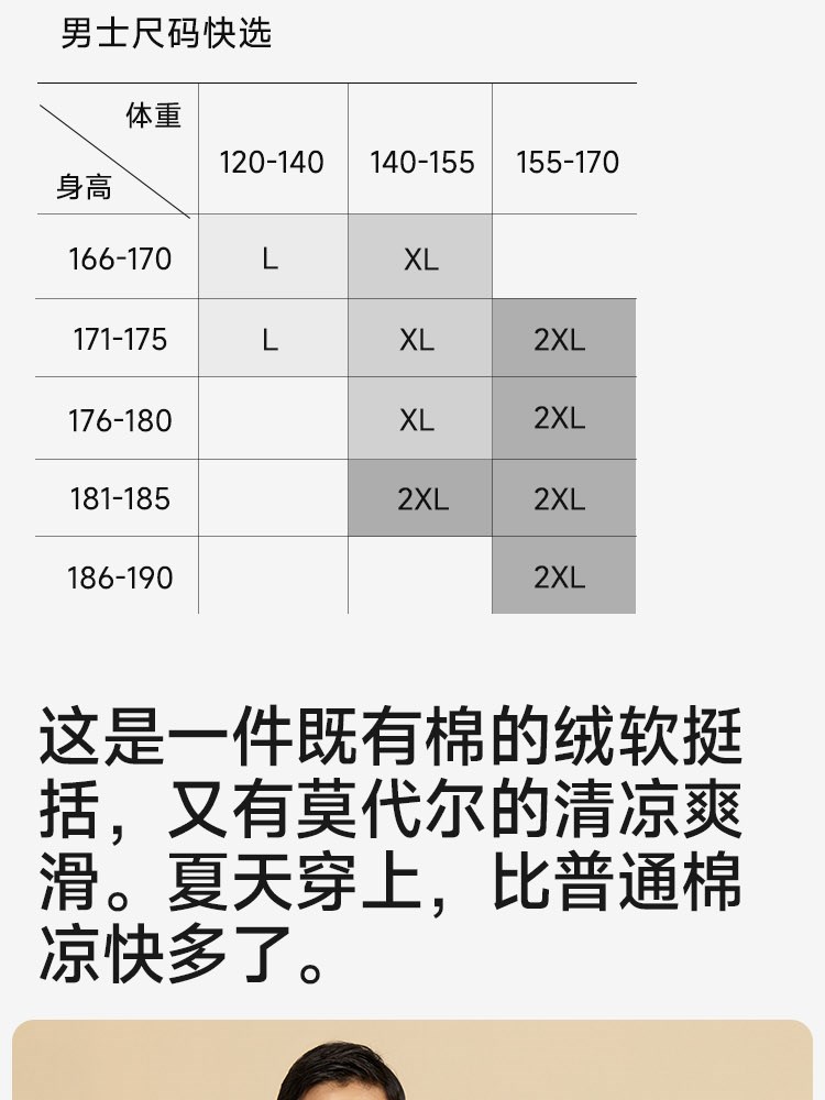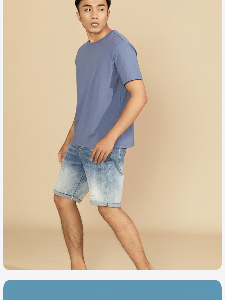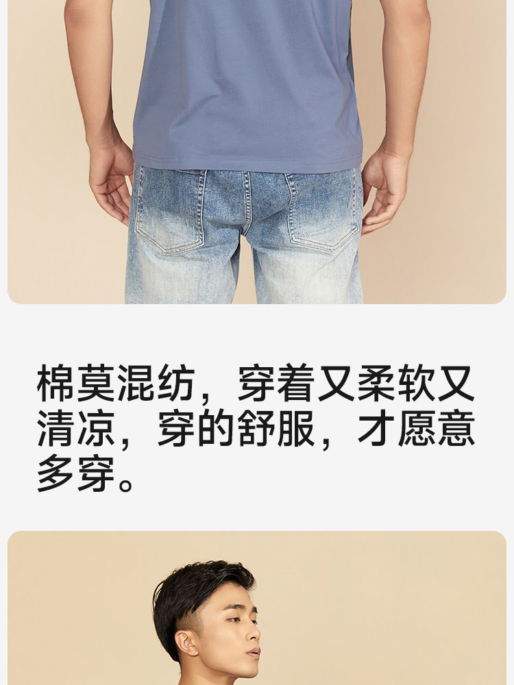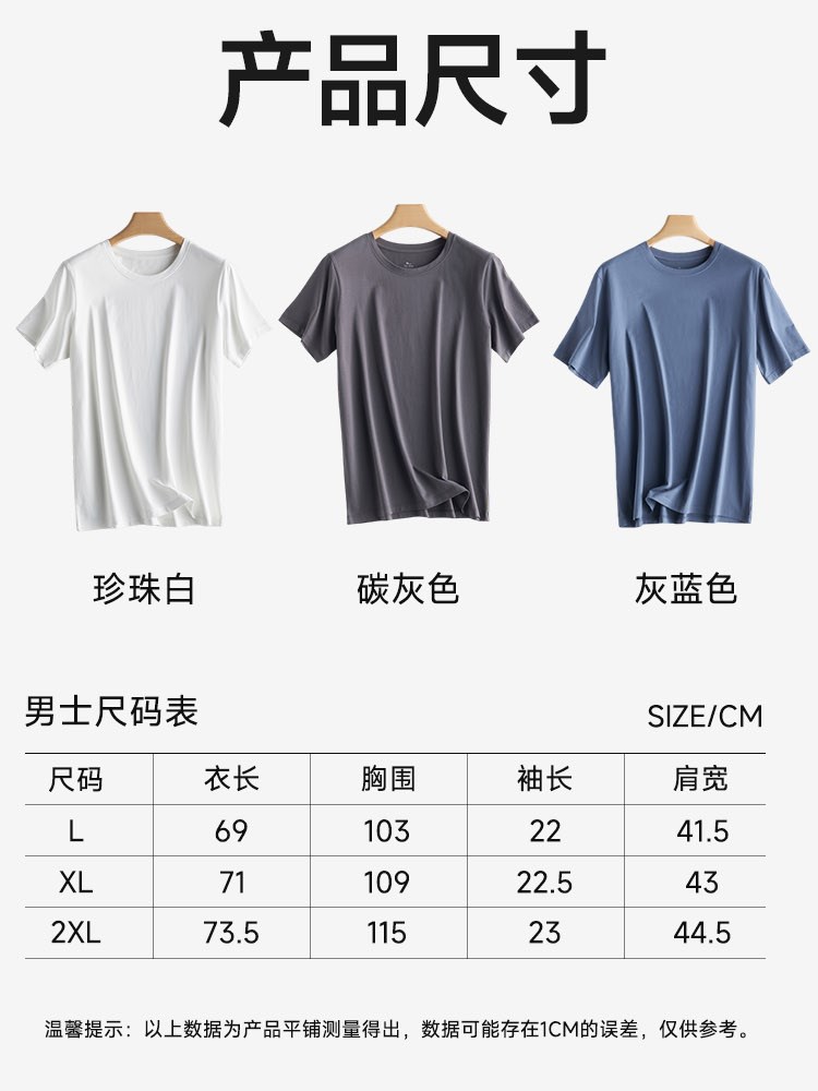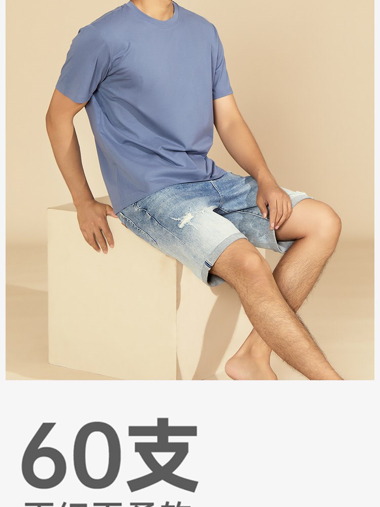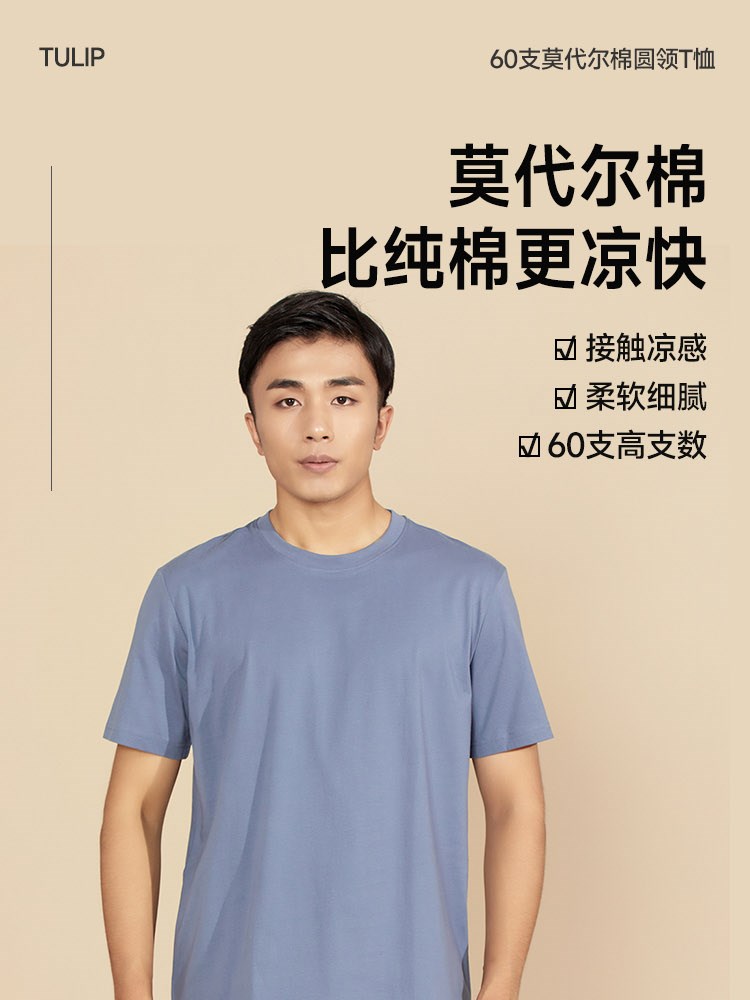 ¥109每满299减30男士60支双面莫代尔棉圆领T恤