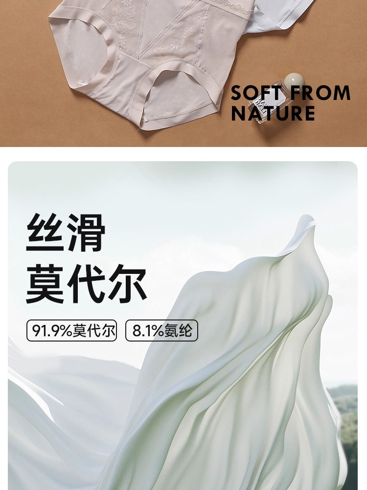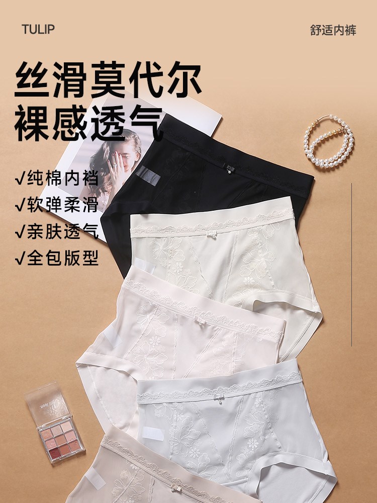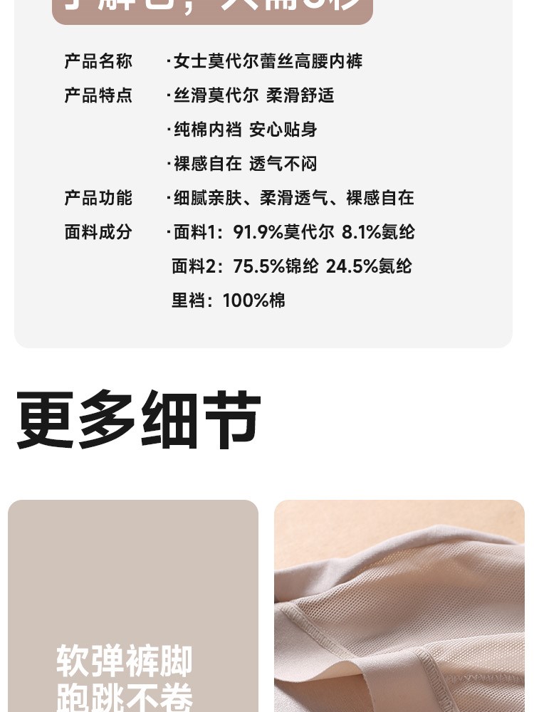 ¥29新女士莫代尔蕾丝高腰内裤