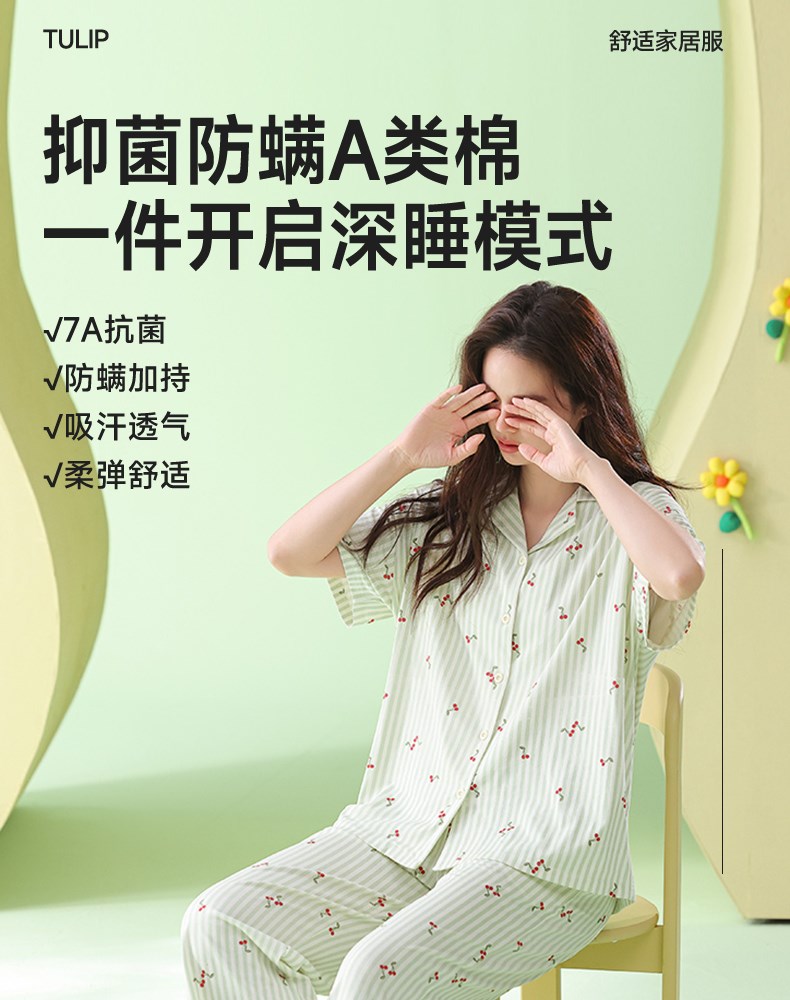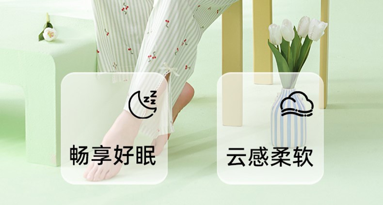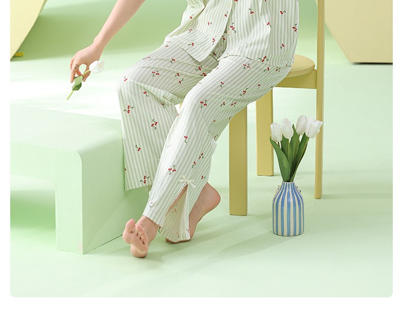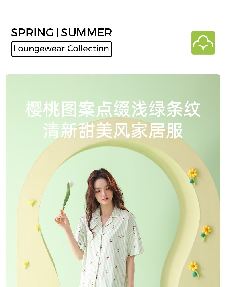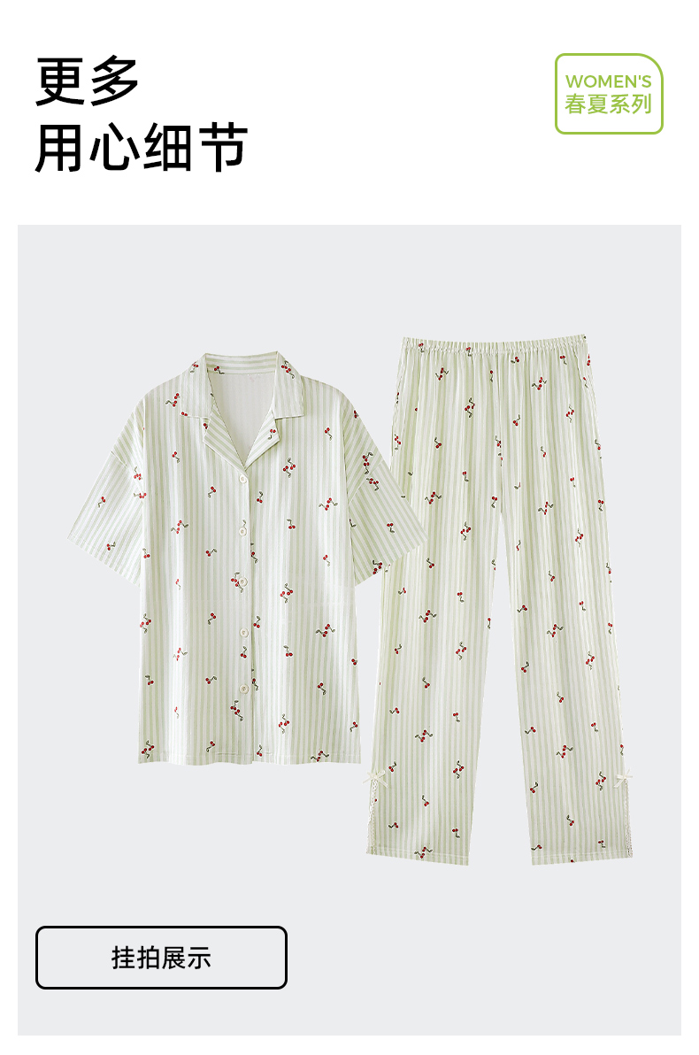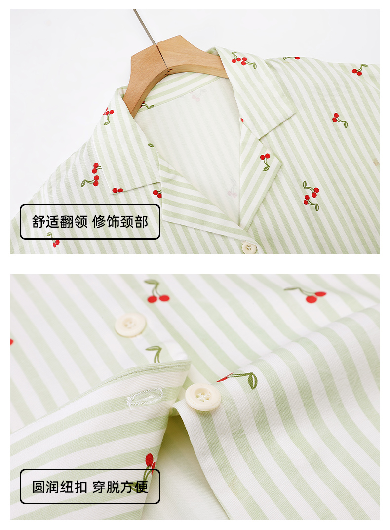¥99新全棉抗菌防螨睡衣(条纹樱桃)