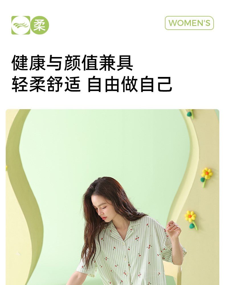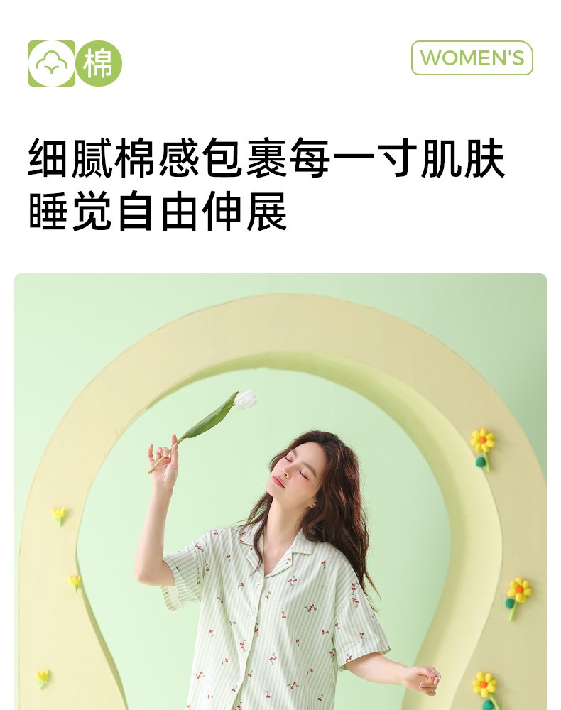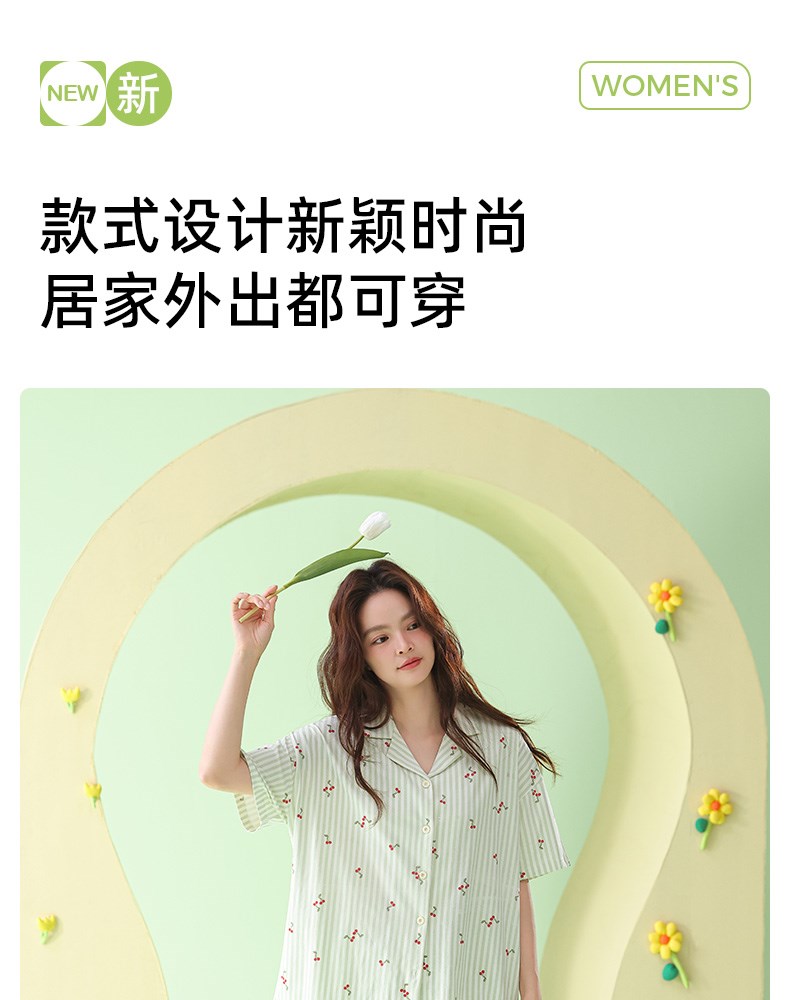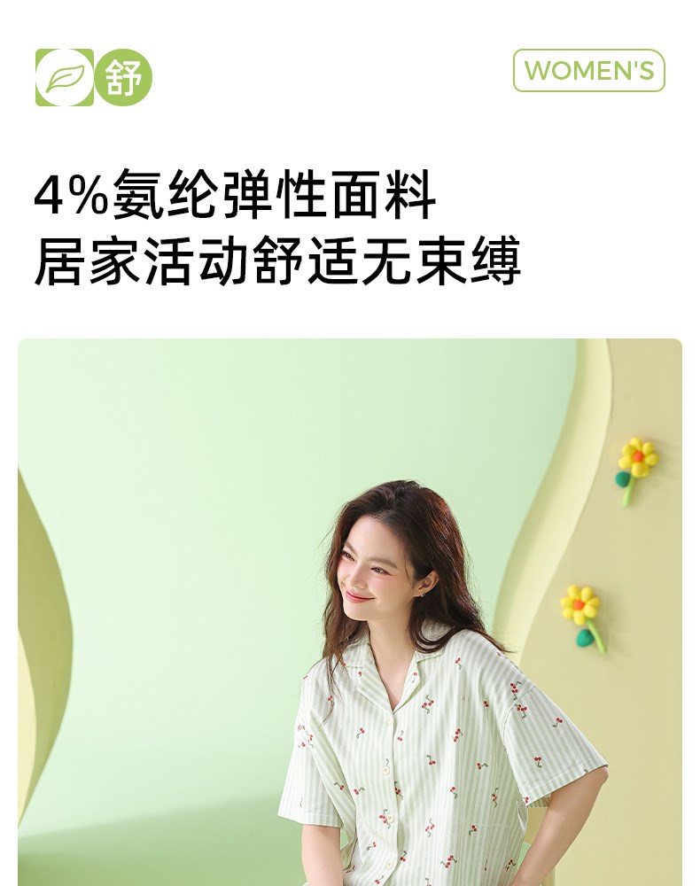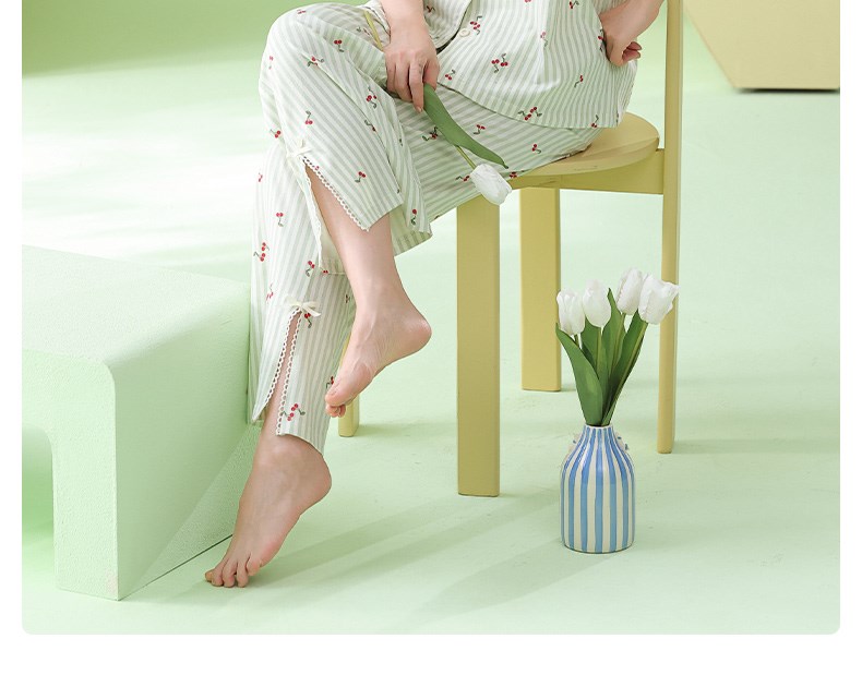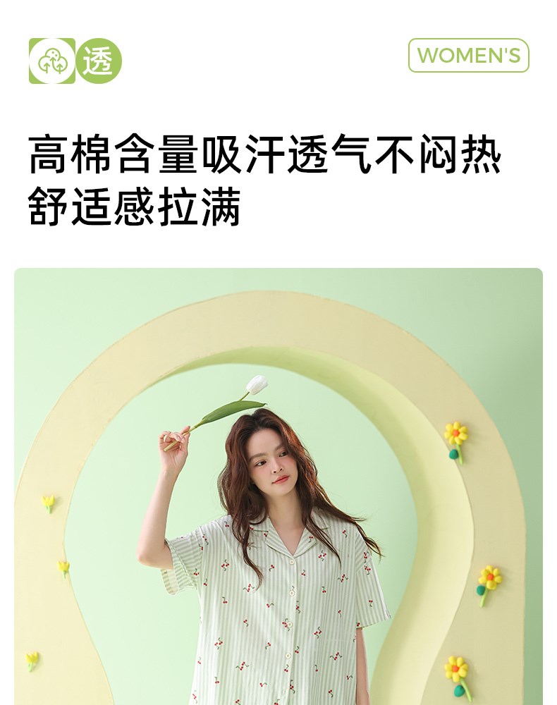 ¥99新全棉抗菌防螨睡衣(条纹樱桃)