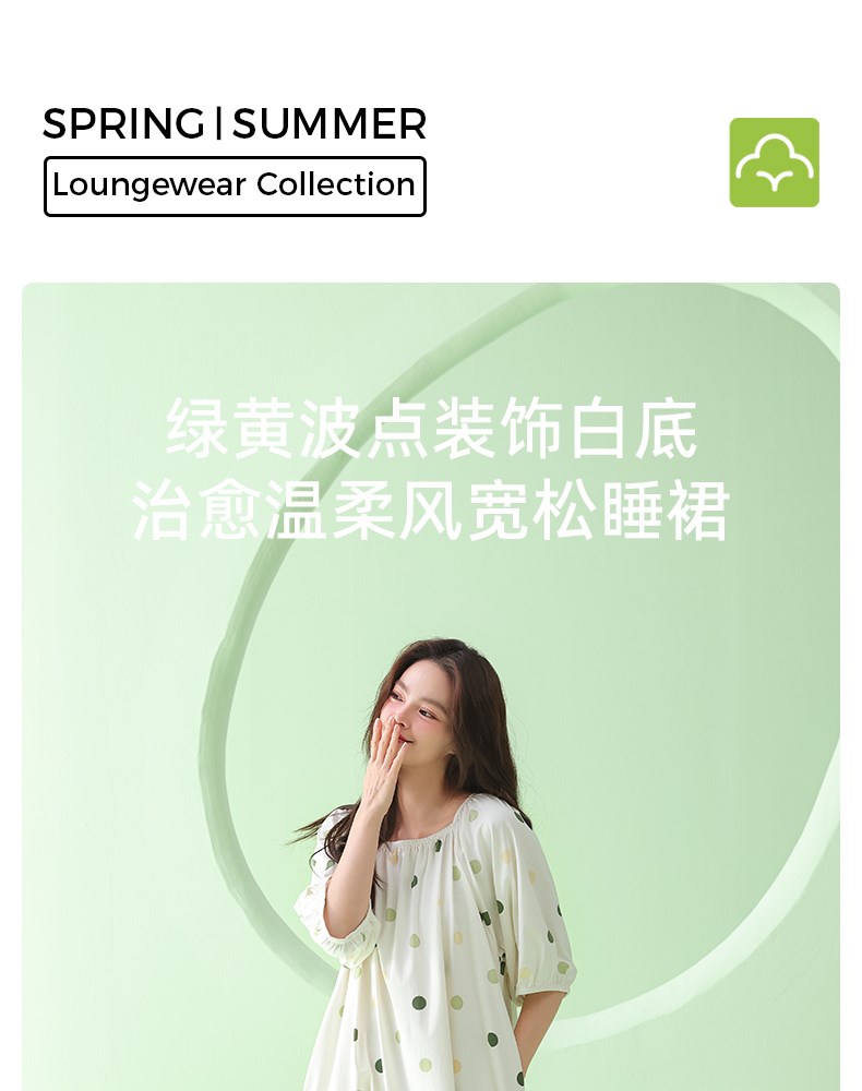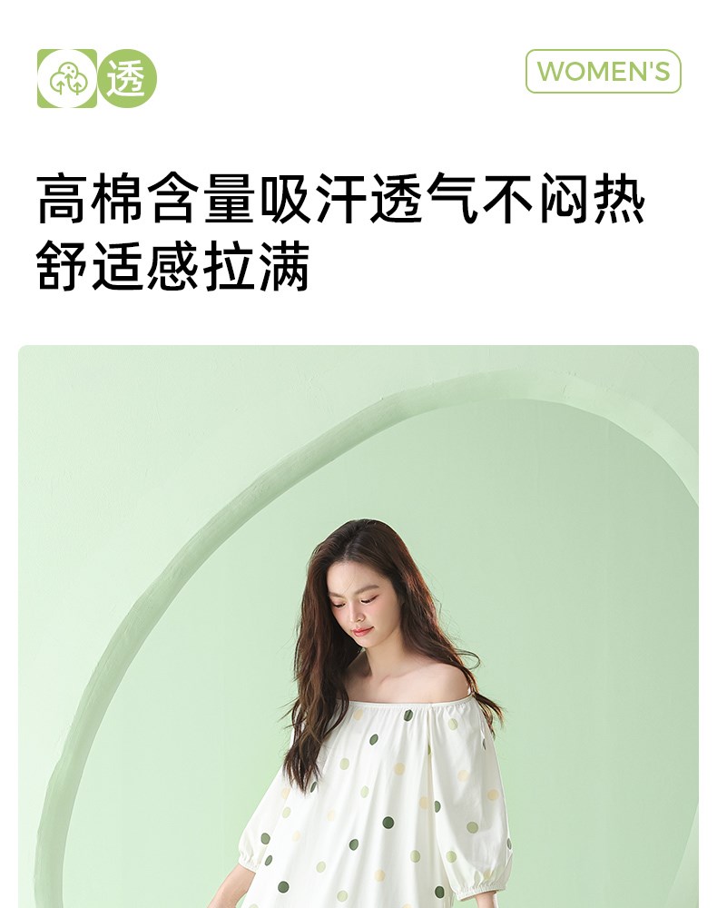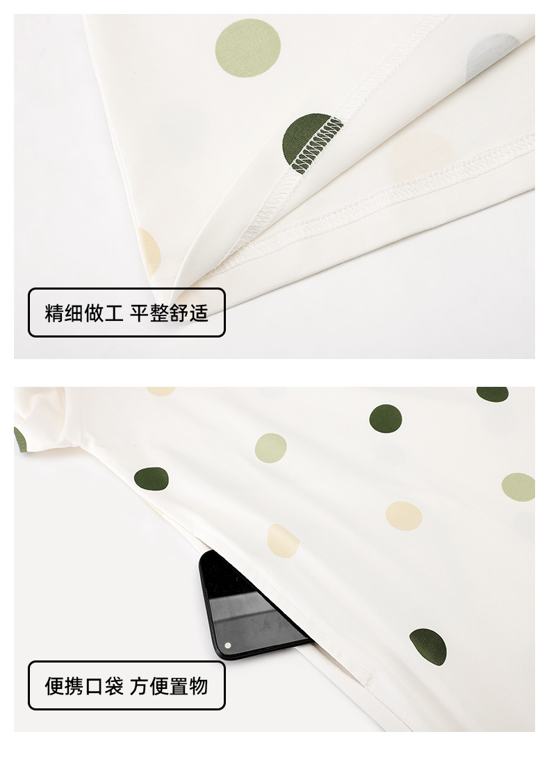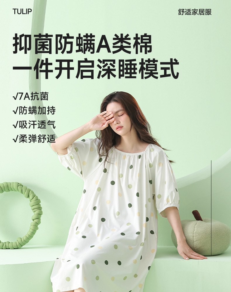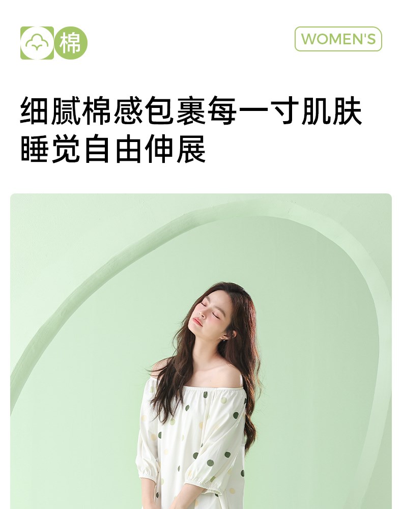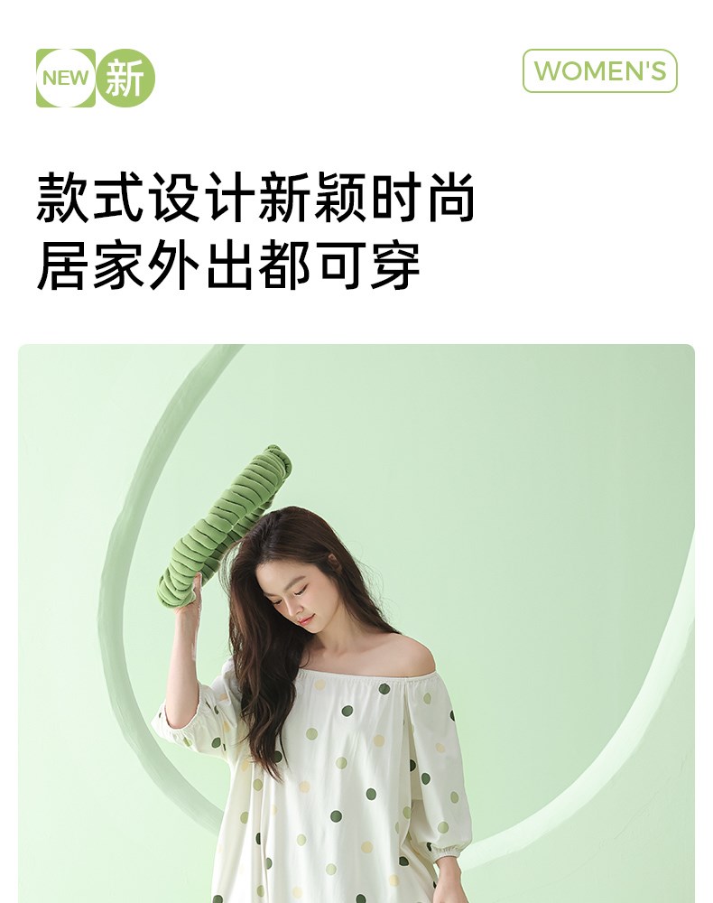 ¥149新全棉抗菌防螨睡裙(绿色波点)
