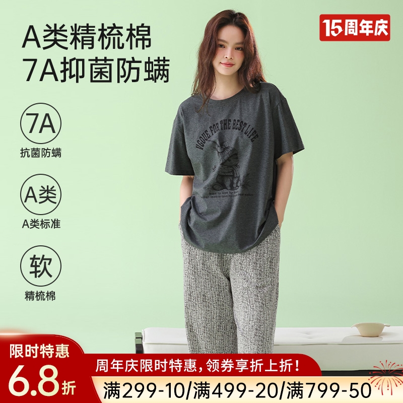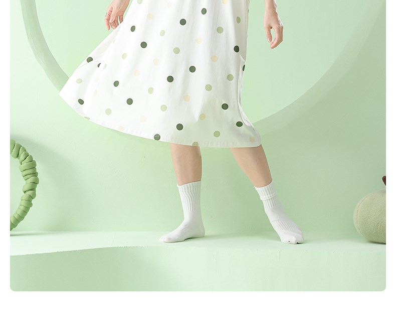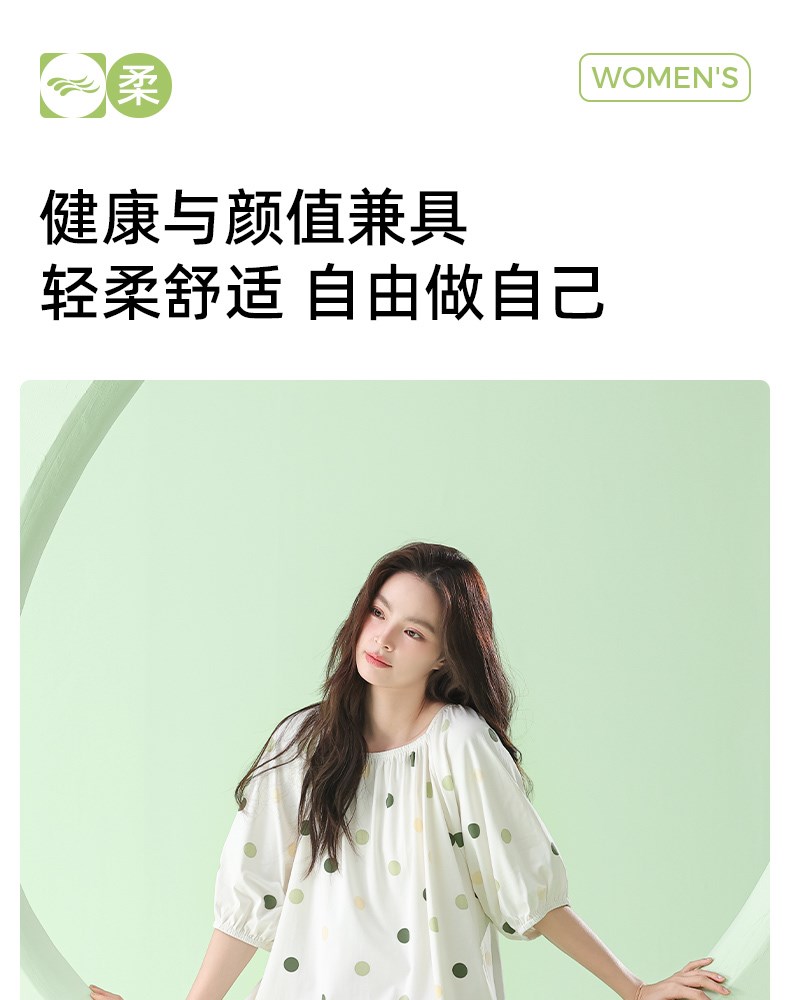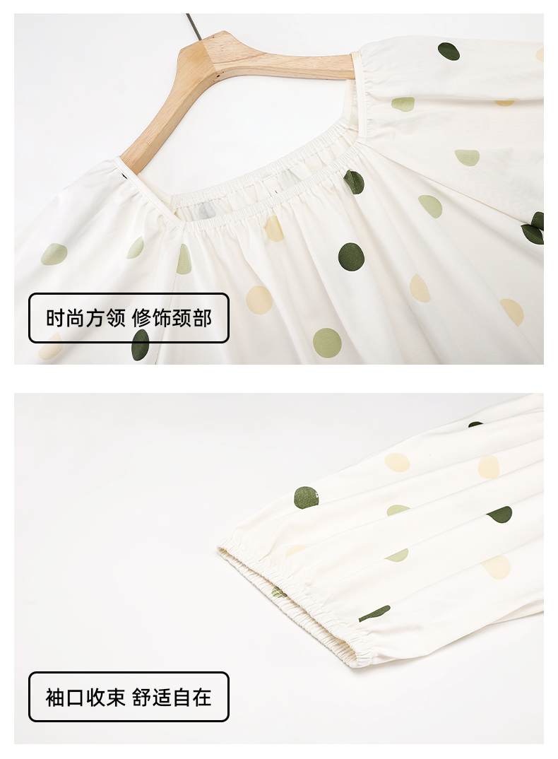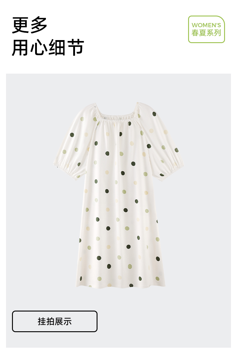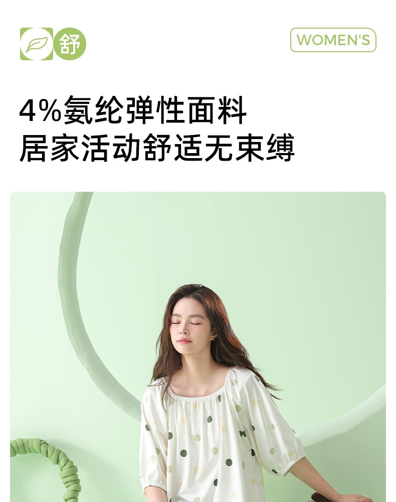 ¥149新全棉抗菌防螨睡裙(绿色波点)